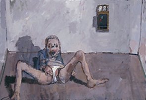 S'agit-il de déments dans leurs cellules asilaires ? Ou de vieilles gens finissant leur vie dans celles aussi exiguës de quelque terrifiant mouroir, avec pour toute compagnie leur ombre déformée ? Quelle que soit la réponse, elle est tragique : d'autant que la plupart du temps, ces gens-là sont nus ! Ou pire encore, leur pantalon tombe sur leurs chevilles maigres ; une affreuse culotte sale et distendue bée entre leurs cuisses écartées Et toujours reviennent ces corps inesthétiques aux peaux fripées, dessinés en quelques lignes évocatrices dans leur étisie violacée ; aux ventres gonflés ; aux jambes cagneuses et pubis poivre et sel ; aux sexes pendants chez les hommes ; aux seins flasques et vulves béantes pour les femmes. Lovés en position ftale sur leur lit de misère ; assis au bord du siège, mains repliées autour du corps comme si, même absente -d'ailleurs, de temps à autre, elle est matérialisée-la camisole de force comprimait encore leurs bras ! Ou bien, ils sont là, debout à l'avant du tableau, immobiles, un peu voûtés, lèvres serrées aux commissures tombantes, ou visages tordus sur un cri Et dans leurs gros yeux sans cils cernés de rouge fixant sans le voir, un point au-delà du spectateur, et qui de prime abord semblent vacants, se succèdent en fait au fil des toiles, misère, tristesse, peur, toute la solitude du monde !