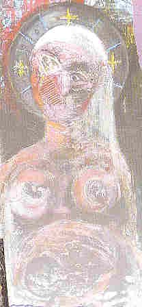 JR. : que votre personnage semble complètement halluciné peut-être à cause de son corps déformé, quel cheminement avez-vous accompli entre ces couleurs vives où, d'ailleurs, l'horreur est la même, et ce personnage ?