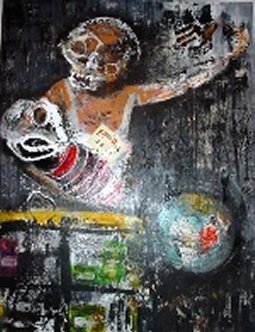 JR. : Pour bien enfoncer le clou, vous avez deux reliquaires : dans l'un, une femme avec une tête de lapin ; dans l'autre, une tête de mort. Peut-on alors considérer que toutes les actions portées sur vos toiles, mènent vos personnages à la mort ?